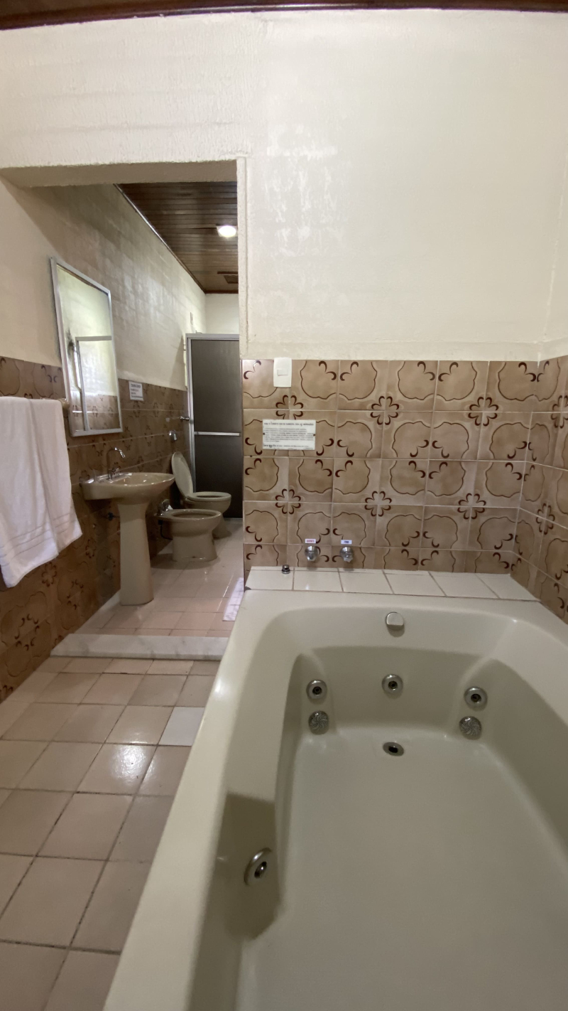 Contém hidromassagem, ar condicionado, três canais de vídeo, som, ducha a gás e sala para refeições.
