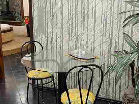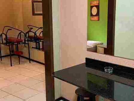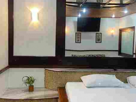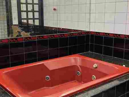Contém ar condicionado, dois canais de vídeo, som, ducha a gás, hidromassagem, sala para refeições, cadeira erótica, e decoração diferenciada.