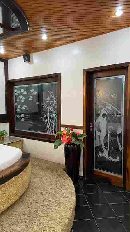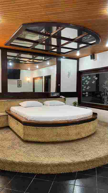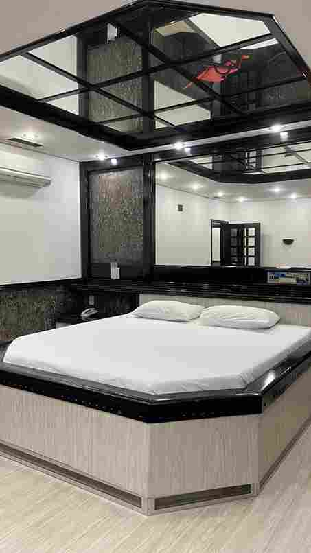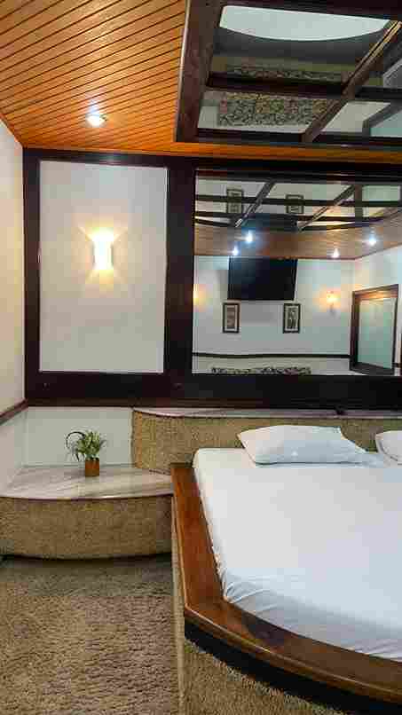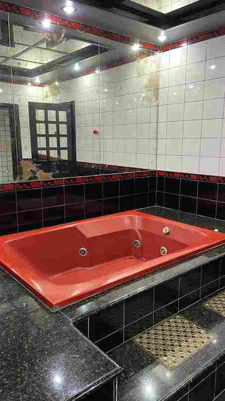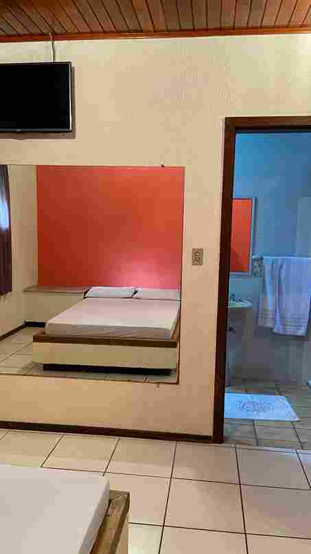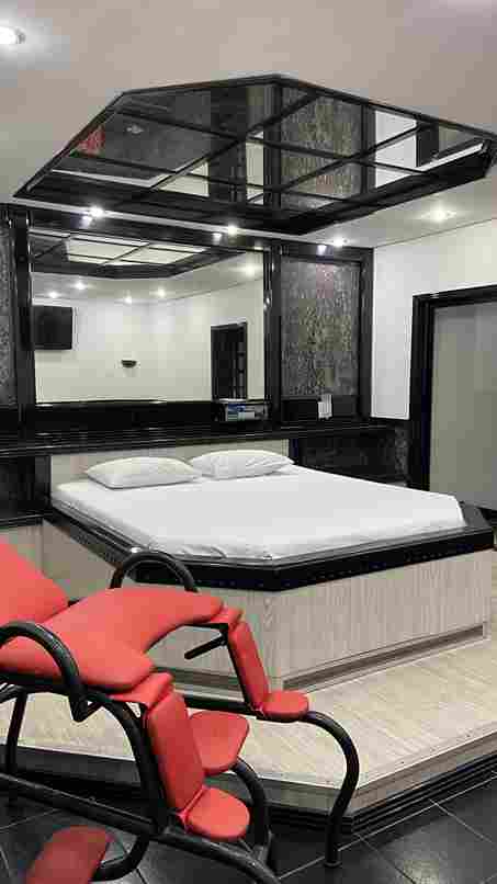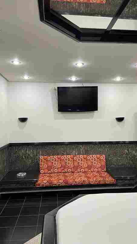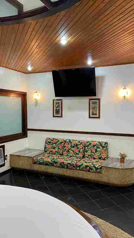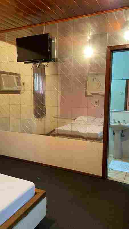 Contém ar condicionado, dois canais de vídeo, som, ducha a gás, hidromassagem, sala para refeições, cadeira erótica, e decoração diferenciada.